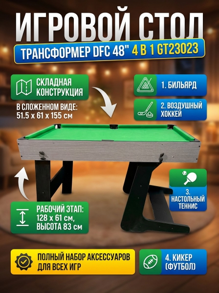 Игровой стол - трансформер DFC 48" 4 в 1 GT23023 - Описание
