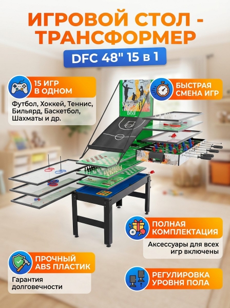 Игровой стол - трансформер DFC 48" 15 в 1 - Бренд