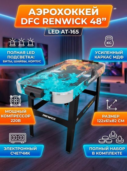 Игровой стол - аэрохоккей DFC RENWICK 48" LED AT-165 - Характеристики