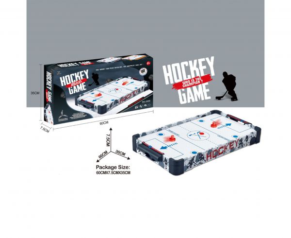 Настольный аэрохоккей появился случайно, когда в 1960 годах в штате Мичиган (США) корпорация Brunswick заказала группе изобретателей разработку стенда со встроенной системой циркуляции воздуха. Благодаря компрессору и множеству "воздушных" отверстий обеспечивалась высокая скорость движения шайбы, поэтому игровые характеристики изделия обратили на себя внимание специалистов. И вскоре в аэрохоккей стали играть во всем мире.