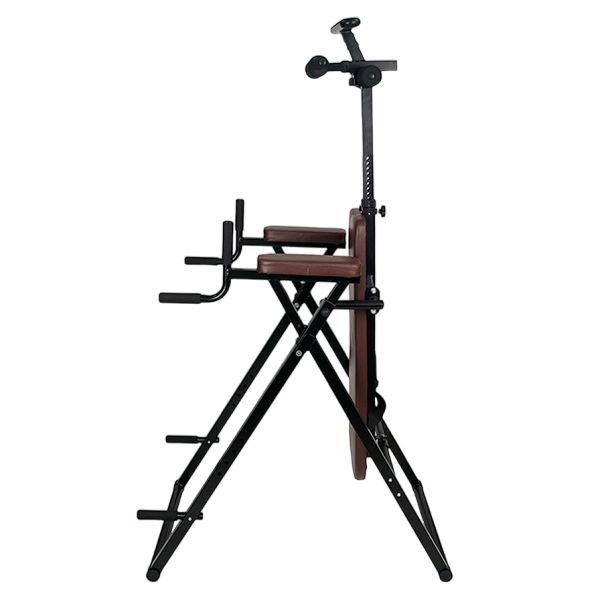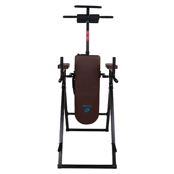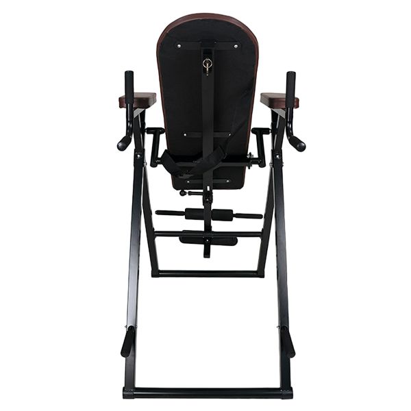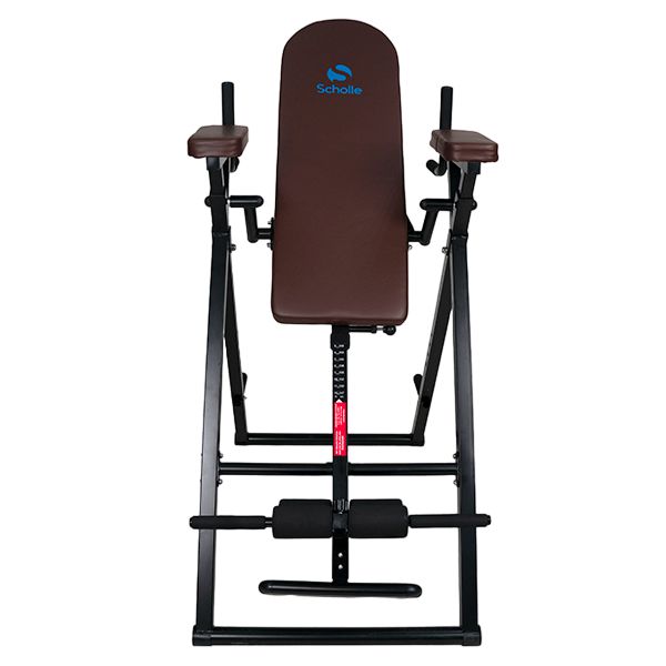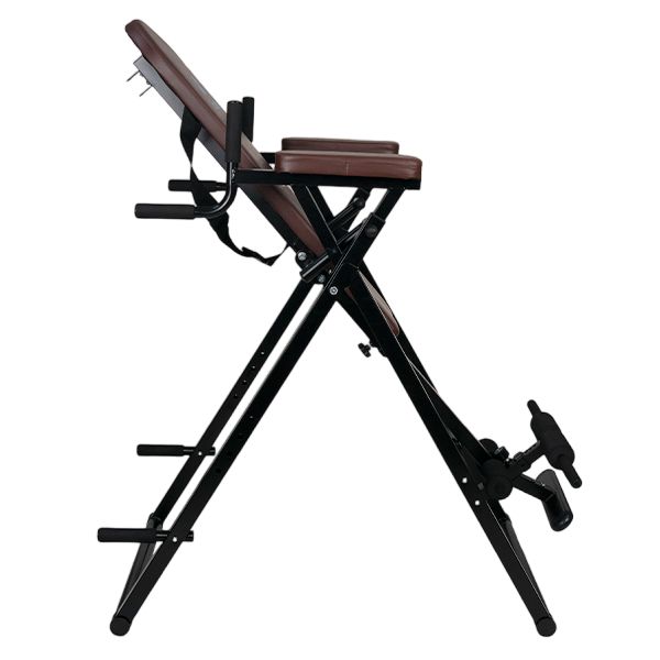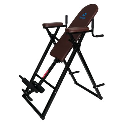 - Инверсионные столы – предназначены для щадящей растяжки позвоночника, а также для снятия болей в спине после изнурительных тренировок. Конструкция представляет собой подвешенную скамью с фиксаторами для обратного виса. Корпус изготовлен из стали, а обивка – из кожи.