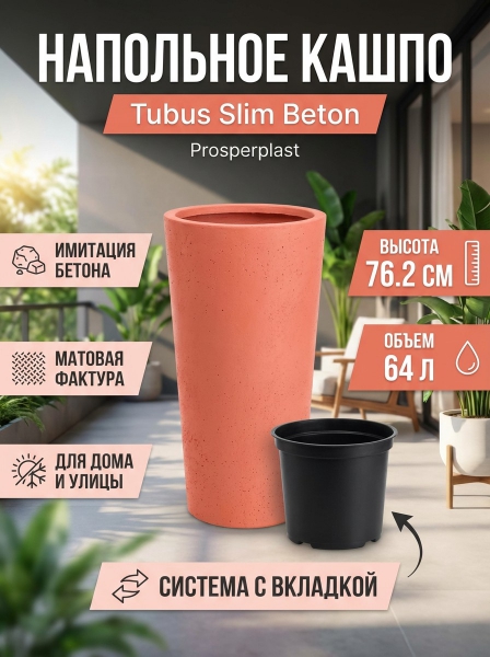 Купить кашпо для цветов Prosperplast Tubus Slim Beton по эксклюзивной цене от официального дилера. Профессиональные консультации.