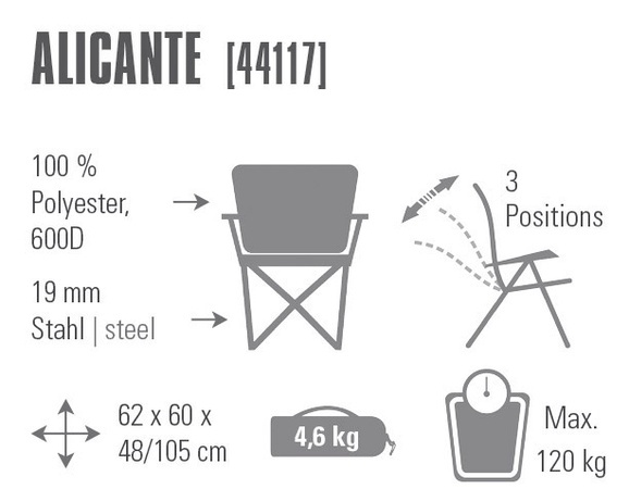 Комфортабельное кресло для кемпинга High Peak Alicante - Характеристики