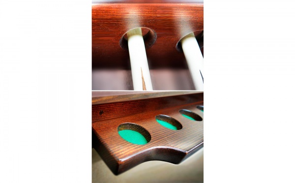 - Аксессуары – это не только освещение бильярдного стола, но и шкафы для хранения киев или шаров. Для кия понадобятся мелки, наклейки, тубусы или футляры. Обустройство стола невозможно без бортов, опор, луз, плит, комплектов резины и других важных комплектующих.