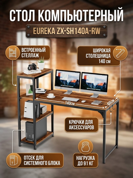 Стол компьютерный со стеллажом Eureka ZX-SH140A-RW Reclaimed Wood - Преимущества