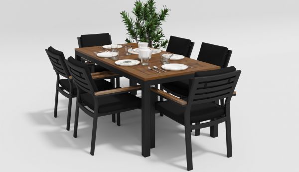 | Цвет: | каркас темно-серый карбон/ подушки черные/ столешница тик |