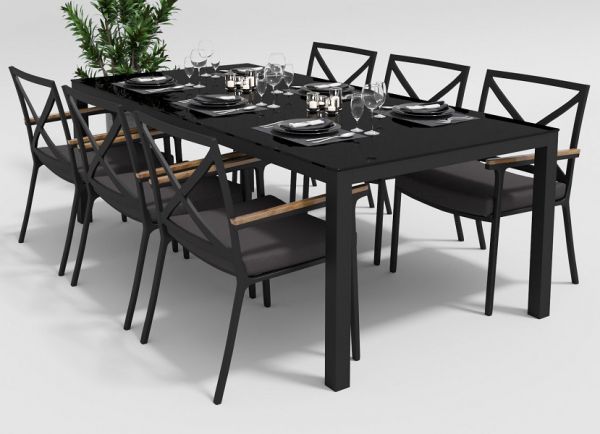 | Особености: | подлокотники стульев из тика, съемный чехол подушки сидения на "молнии" |