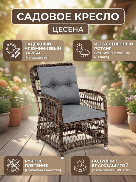Купить кресло для дачи и сада 4SIS "Цесена" из искусственного ротанга, цвет коричневый по эксклюзивной цене от официального дилера. Профессиональные консультации.