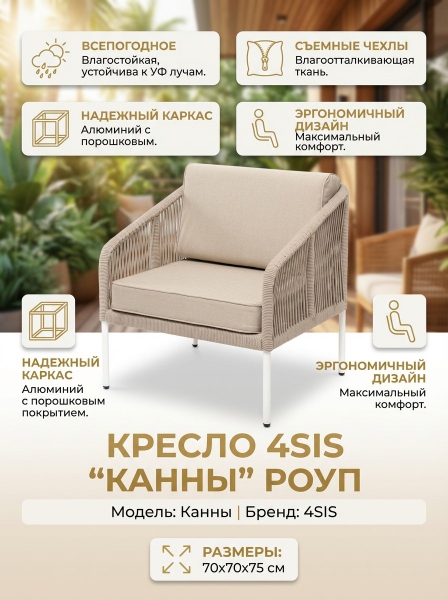 Купить кресло для дачи и сада 4SIS "Канны" роуп бежевый круглый, ткань бежевая 15052 по эксклюзивной цене от официального дилера. Профессиональные консультации.