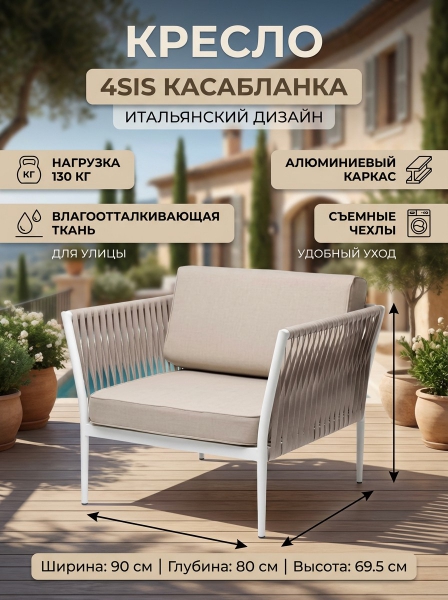 Купить кресло для дачи и сада 4SIS "Касабланка" роуп бежевый, ткань бежевая 052 по эксклюзивной цене от официального дилера. Профессиональные консультации.