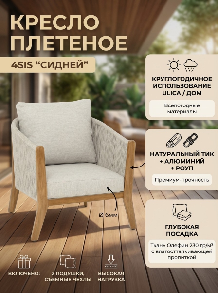 Купить кресло для дачи и сада 4SIS "Сидней" роуп бежевый, ткань бежевая по эксклюзивной цене от официального дилера. Профессиональные консультации.