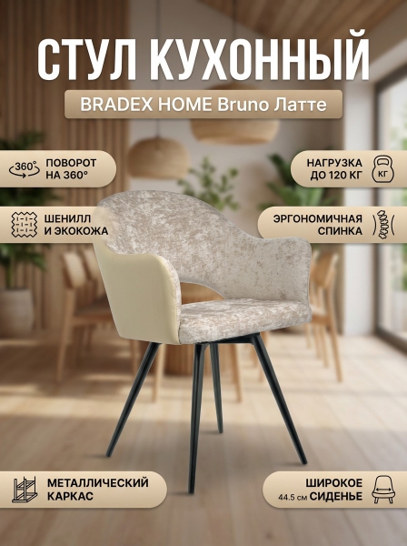 Стул шенилл с экокожей с поворотным механизмом BRADEX HOME Bruno латте - Бренд