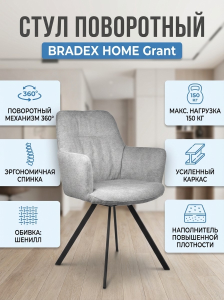 Стул на поворотном механизме BRADEX HOME Grant шенилл - Характеристики