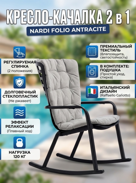 Кресло-качалка пластиковое с подушкой Nardi Folio антрацит, серый - Отзывы