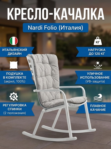 Кресло-качалка пластиковое с подушкой Nardi Folio белый, серый - Отзывы