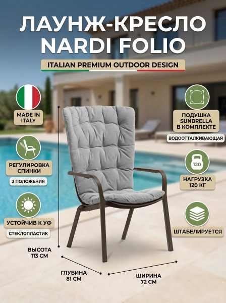 Купить кресло для дачи и сада Nardi Folio табак, серый по эксклюзивной цене от официального дилера. Профессиональные консультации.