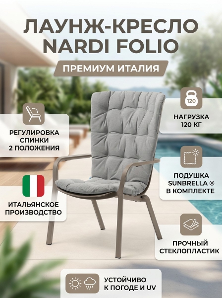 Купить кресло для дачи и сада Nardi Folio тортора, серый по эксклюзивной цене от официального дилера. Профессиональные консультации.