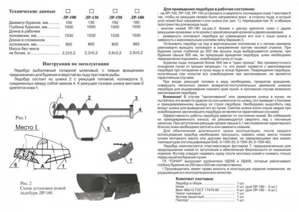 Ледобур Тонар ЛР-100 (100 мм) - Характеристики