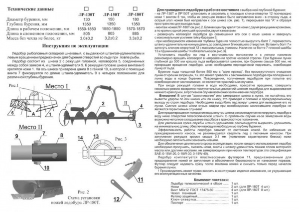 Ледобур Тонар ЛР-130Т (130 мм) телескопический - Характеристики