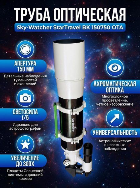 Купить оптический телескоп-рефрактор Sky-Watcher StarTravel BK 150750 OTA по эксклюзивной цене от официального дилера. Профессиональные консультации.