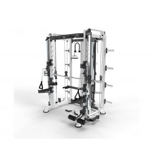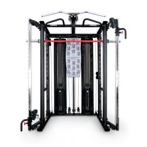 - Мультистанции – многофункциональные тренажеры, которые позволяют спортсмену самостоятельно определять, с какой группой мышц работать. Включают в себя сразу несколько спортивных снарядов и могут комплектоваться дополнительными опциями.