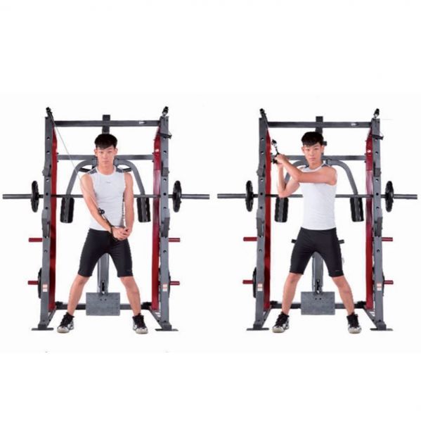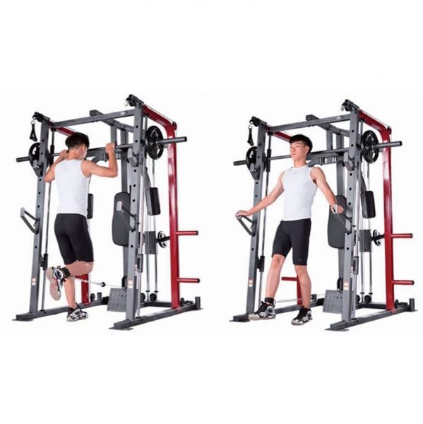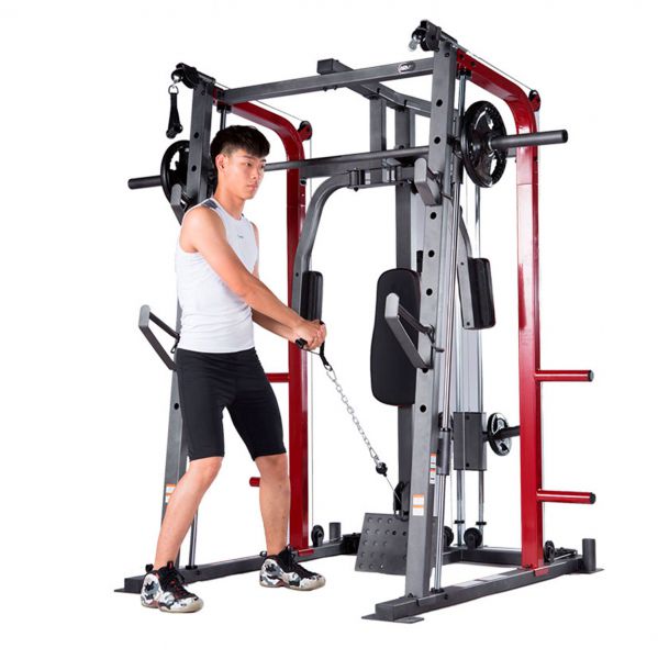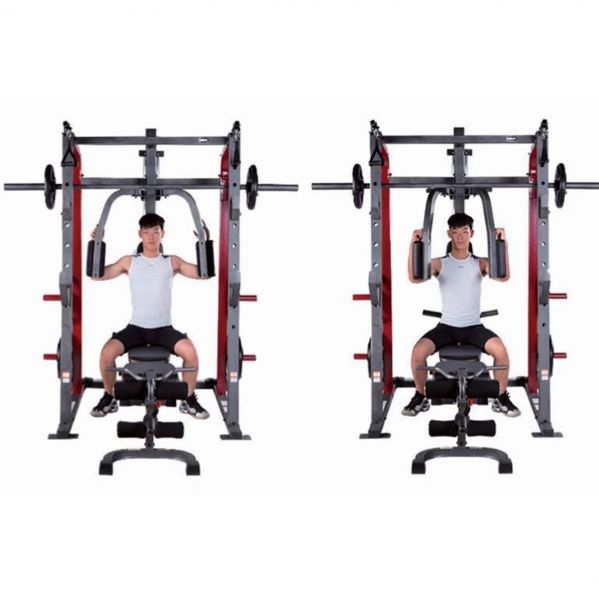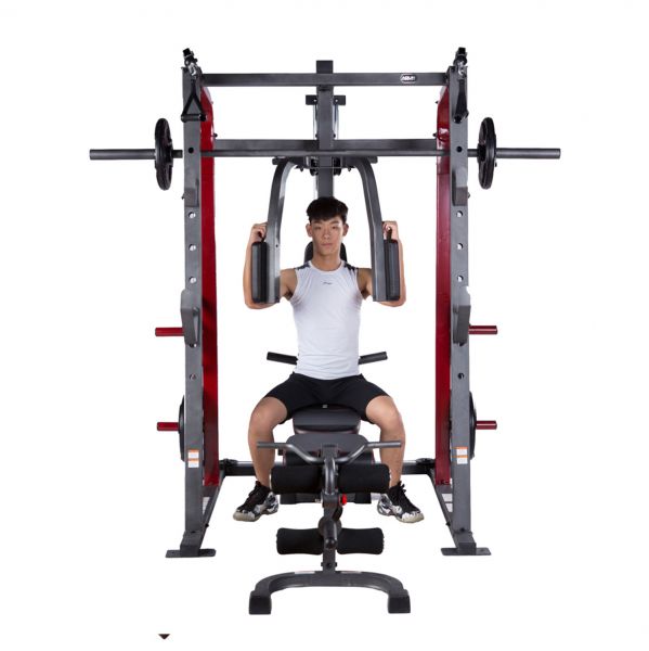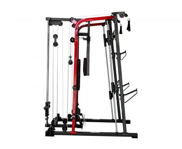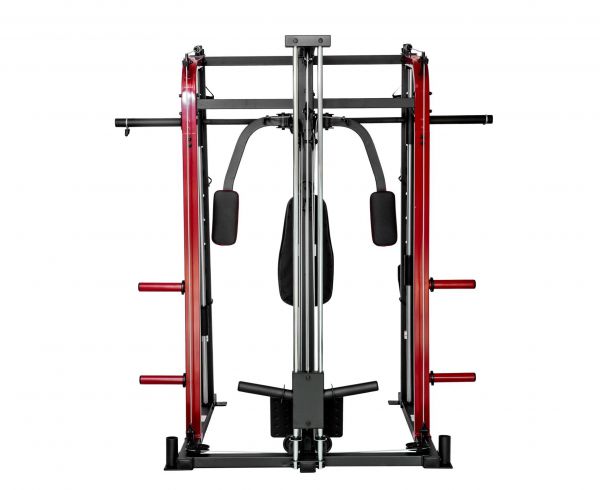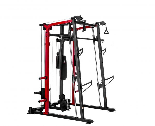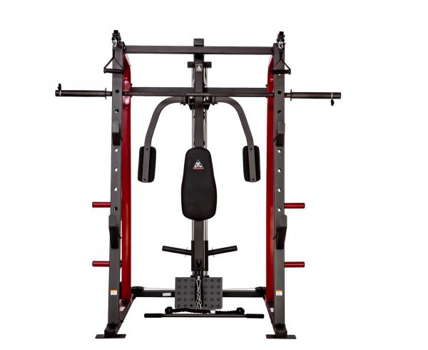 - Мультистанции – многофункциональные тренажеры, которые позволяют спортсмену самостоятельно определять, с какой группой мышц работать. Включают в себя сразу несколько спортивных снарядов и могут комплектоваться дополнительными опциями.
