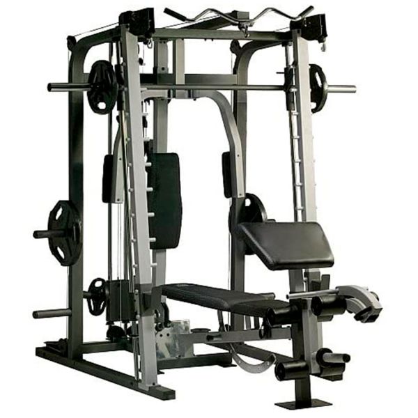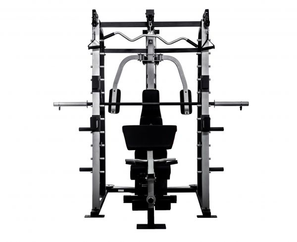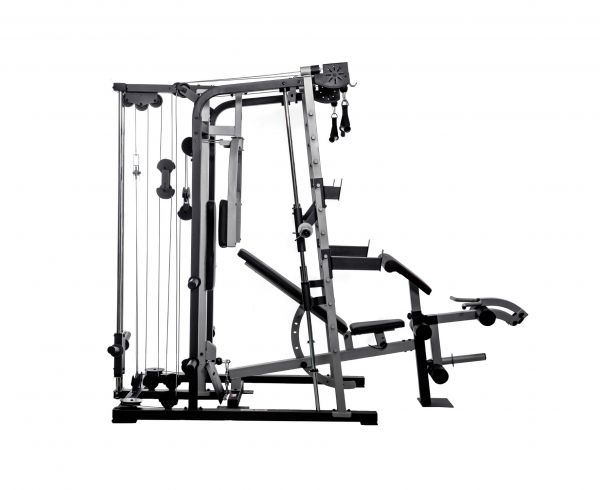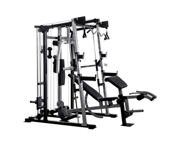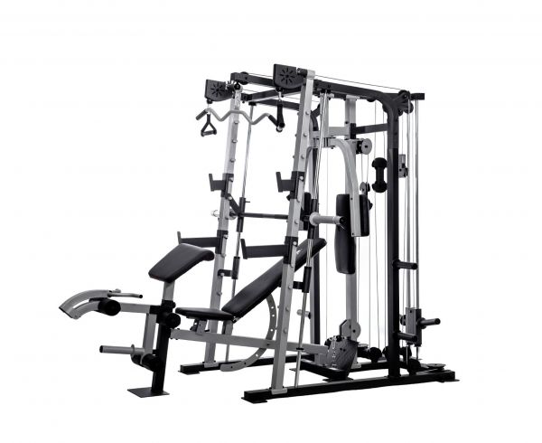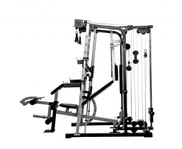 - Мультистанции – многофункциональные тренажеры, которые позволяют спортсмену самостоятельно определять, с какой группой мышц работать. Включают в себя сразу несколько спортивных снарядов и могут комплектоваться дополнительными опциями.