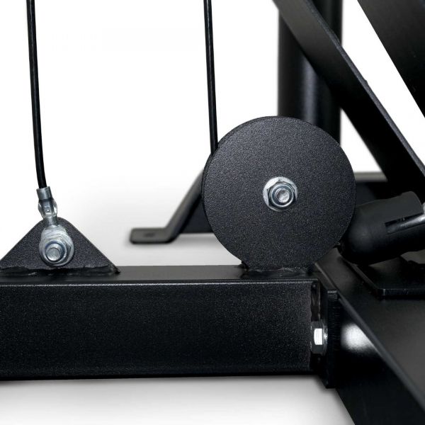 - Со встроенным весом – в них используются плоские грузы, закрепленные с помощью фиксаторов на тросах. Благодаря движению утяжелителей "вверх-вниз" отлично прорабатываются мышцы. Единственный недостаток – целенаправленная работа только с одной группой мышц.