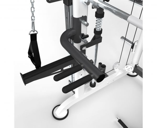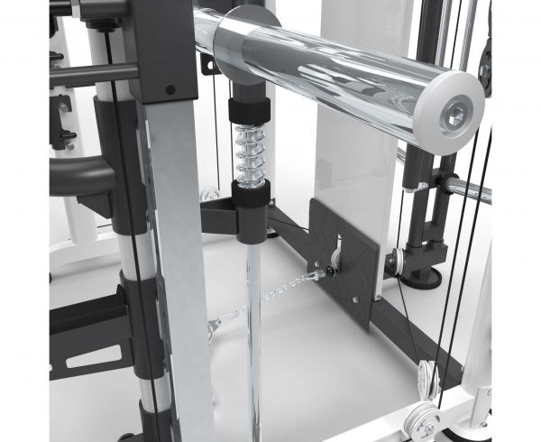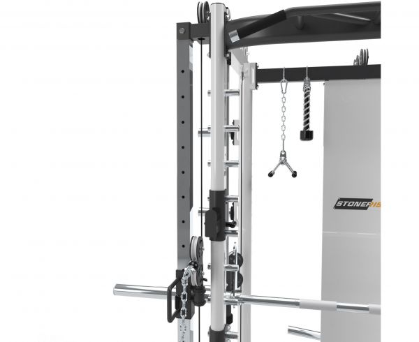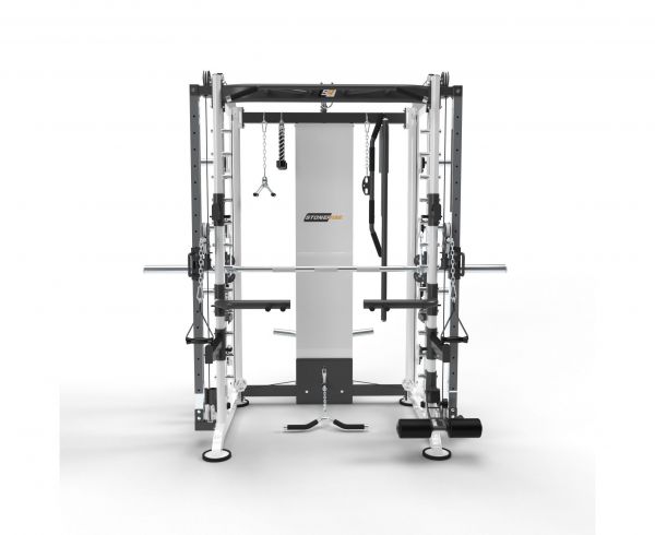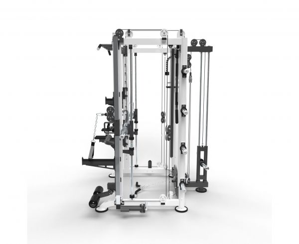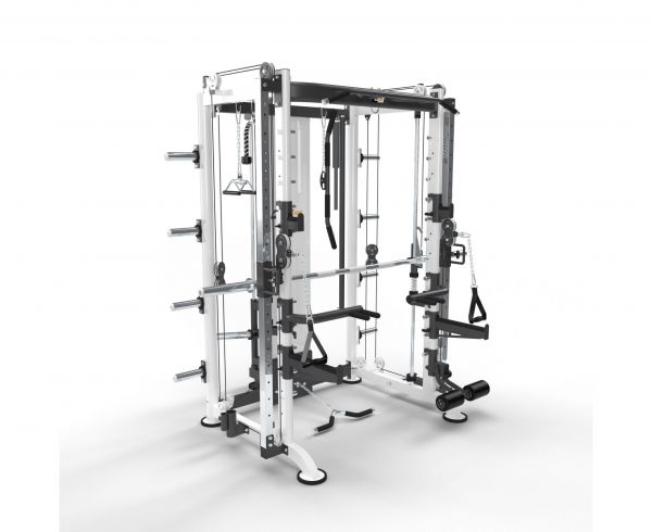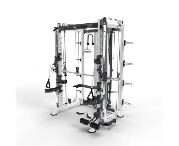 | Функции: | машина Смита, приседания, жим лёжа, гребля, подтягивания, баттерфляй, тренировка с утяжелителями, Т-образная тяга, нижняя тяга, лэндмайн, тренировка пресса |