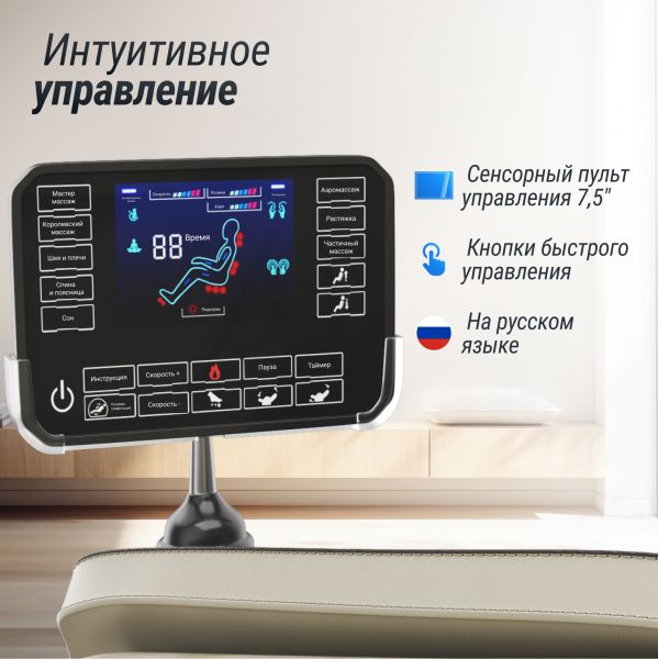 | Пульт управления: | сенсорный планшет 7,5", интерфейс на русском языке, кнопки быстрого управления |
