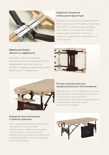 Массажный стол Master Argo складной - Преимущества