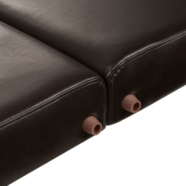 - Обивка – для неё используют натуральную или искусственную кожу, а также устойчивые к разрывам и трениям синтетические ткани. Важно, чтобы поверхность не впитывала в себя влагу и быстро отмывалась от загрязнений, особенно – жирных массажных масел.