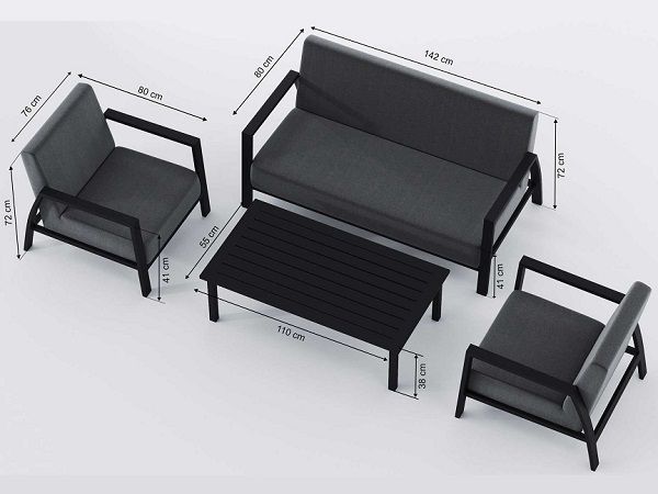 | Диван двухместный: | 142 см х 80 см х 72 см (1 шт) |