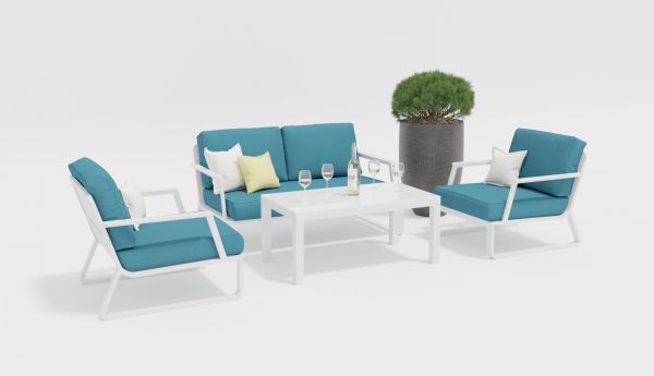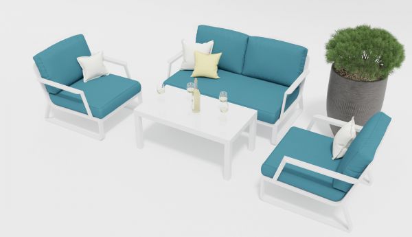 | Цвет: | каркас белый / подушки голубые / столешница белая глянцевая |