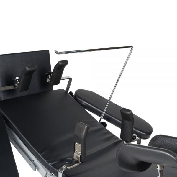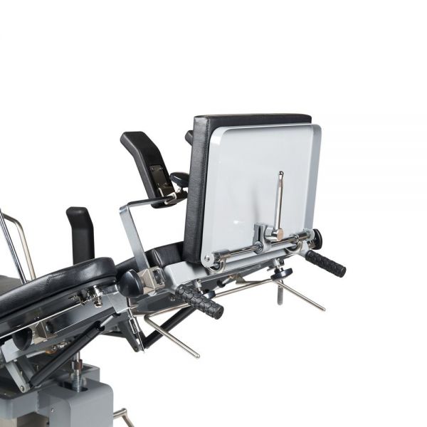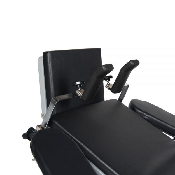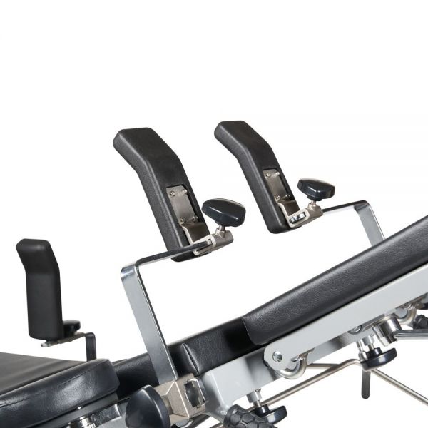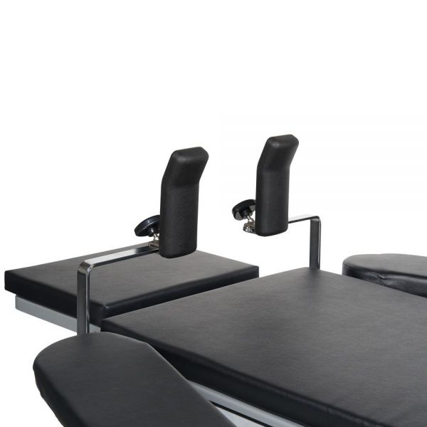 | Спинная секция стола оснащена двумя съемными, регулируемыми по положению относительно секции плечевыми опорами и опорами для рук. | |