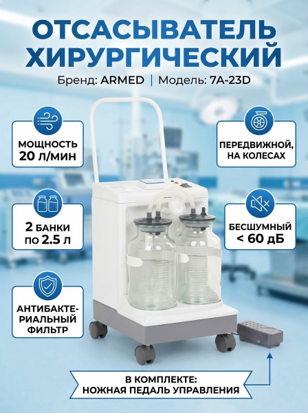 Купить медицинский отсасыватель Armed 7А-23D по эксклюзивной цене от официального дилера. Профессиональные консультации.