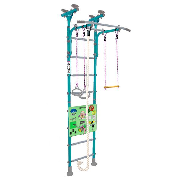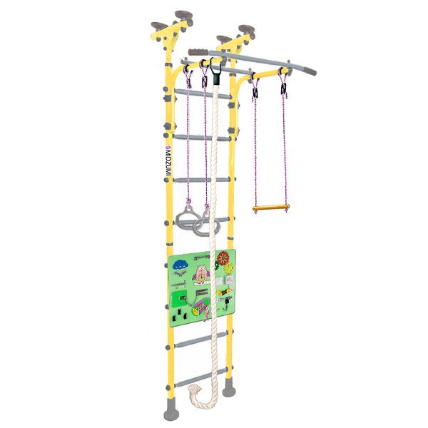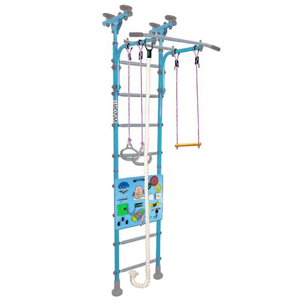 | Комплектация: | шведская стенка, турник, трапеция, канат, гимнастические кольца, бизиборд |