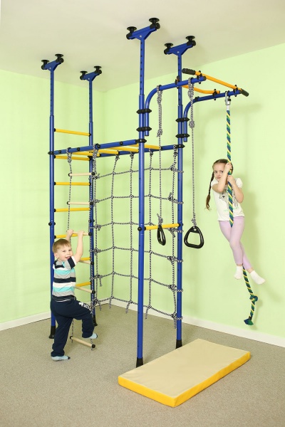- Безопасность – уберечь юных спортсменов от получения травм и ушибов помогут маты. Они созданы специально для оснащения шведских стенок, поэтому достаточно прочные, мягкие, плотные, но не занимают много места. Можно также использовать мягкие игровые элементы.