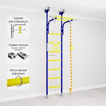 В многих моделях первые две-три ступени имеют специальное антискользящее покрытие с массажным эффектом. Можно к шведской стенке установить тренажер для спины и ног, который улучшает осанку и благотворно влияет на неокрепшие детские мышцы.