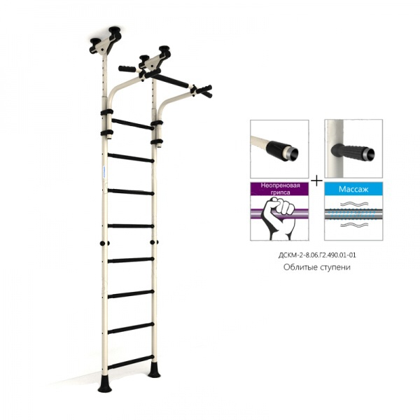 В многих моделях первые две-три ступени имеют специальное антискользящее покрытие с массажным эффектом. Можно к шведской стенке установить тренажер для спины и ног, который улучшает осанку и благотворно влияет на неокрепшие детские мышцы.
