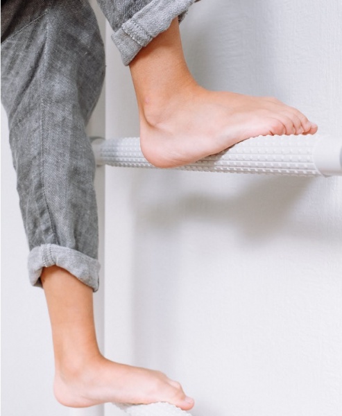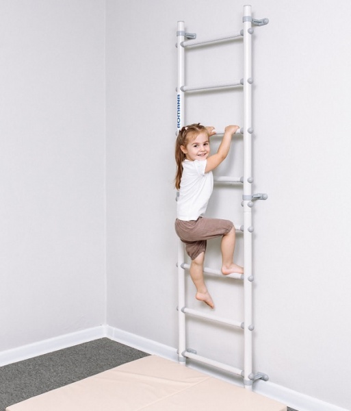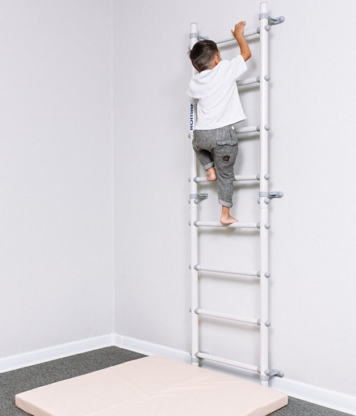 В многих моделях первые две-три ступени имеют специальное антискользящее покрытие с массажным эффектом. Можно к шведской стенке установить тренажер для спины и ног, который улучшает осанку и благотворно влияет на неокрепшие детские мышцы.