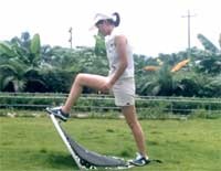 - Спортивные батуты – их размеры варьируются от 1,5 до 6 метров в диаметре. Основой выступает стальная рама и прочные W-образные ножки. Большое количество пружин обеспечивает идеальные условия для совершения сложных прыжков и подготовки к соревнованиям.