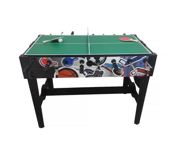 - Особенности конструкции – как правило, столешница имеет двух- или трехстороннее покрытие по принципу "перевертыша". Существуют также выдвижные и многоуровневые конструкции игровых столов. Благодаря наличию простых регулировок можно быстро менять столешницу для игры.