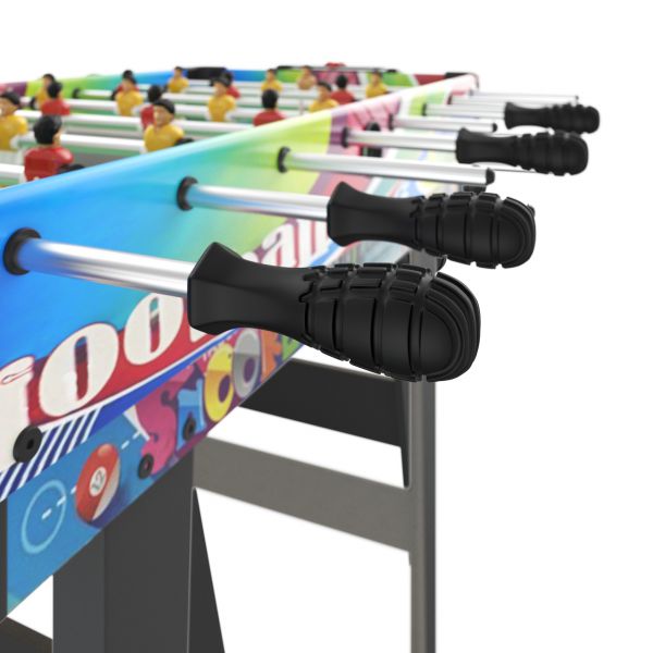 | Аксессуары в комплекте: | 2 кия, шары, треугольник, мел, 22 игрока, 2 мяча Ø 35мм, 2 биты, 2 шайбы, 2 ракетки, 2 шарика, сетка |