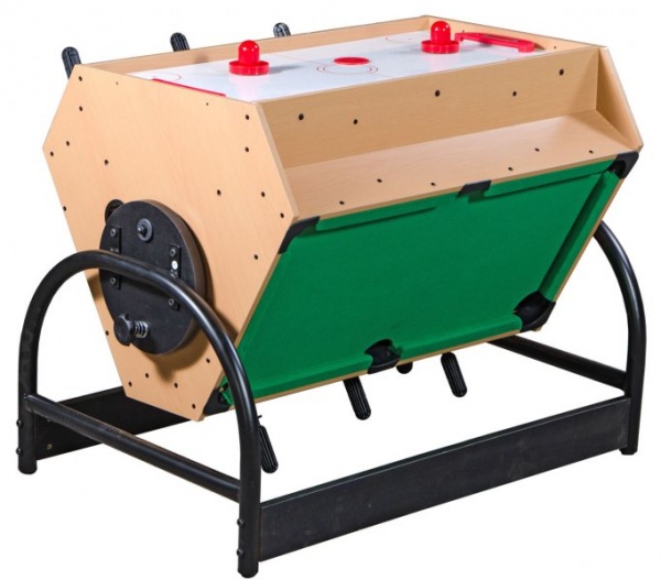 - Особенности конструкции – как правило, столешница имеет двух- или трехстороннее покрытие по принципу "перевертыша". Существуют также выдвижные и многоуровневые конструкции игровых столов. Благодаря наличию простых регулировок можно быстро менять столешницу для игры.