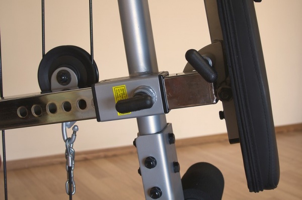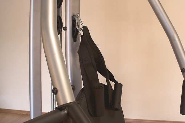 - Со встроенным весом – в них используются плоские грузы, закрепленные с помощью фиксаторов на тросах. Благодаря движению утяжелителей "вверх-вниз" отлично прорабатываются мышцы. Единственный недостаток – целенаправленная работа только с одной группой мышц.