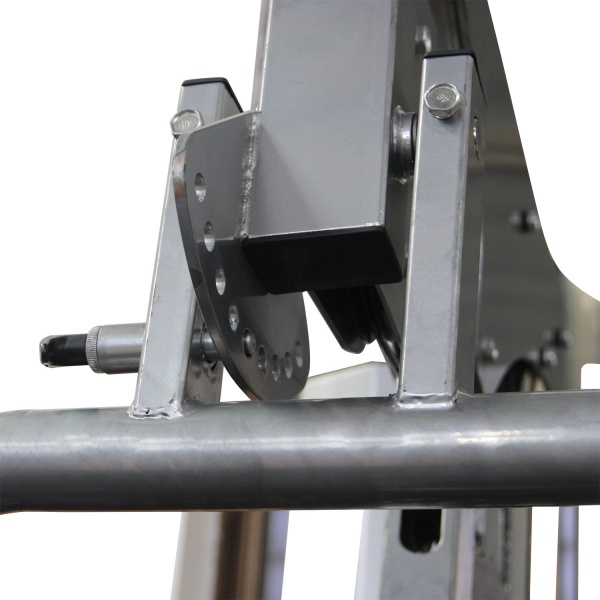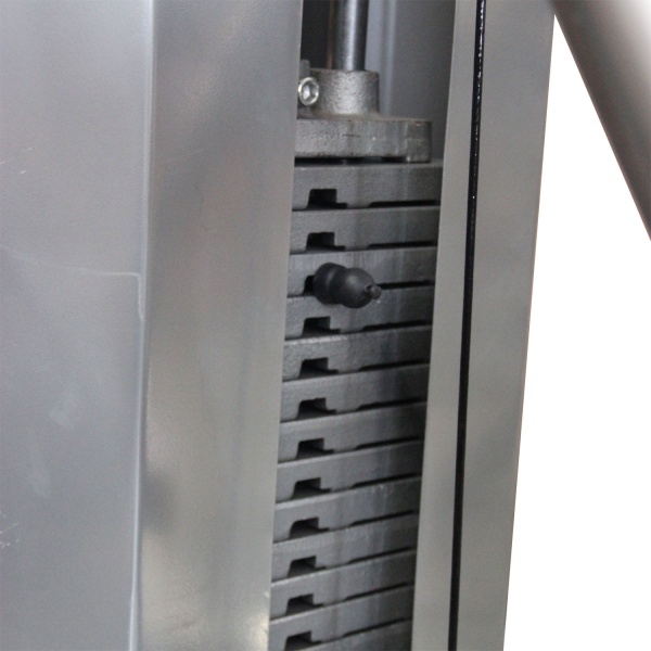 - Со встроенным весом – в них используются плоские грузы, закрепленные с помощью фиксаторов на тросах. Благодаря движению утяжелителей "вверх-вниз" отлично прорабатываются мышцы. Единственный недостаток – целенаправленная работа только с одной группой мышц.