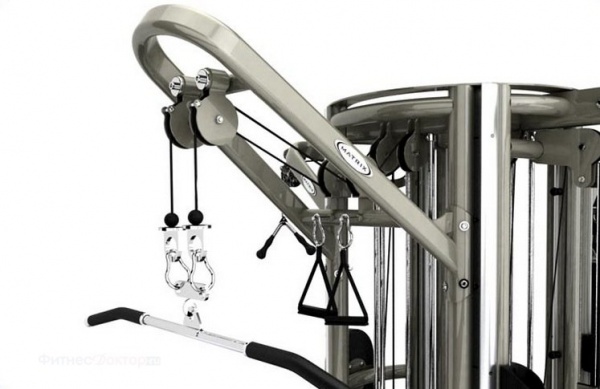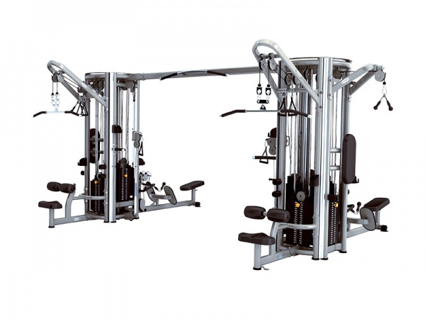 - Мультистанции – многофункциональные тренажеры, которые позволяют спортсмену самостоятельно определять, с какой группой мышц работать. Включают в себя сразу несколько спортивных снарядов и могут комплектоваться дополнительными опциями.