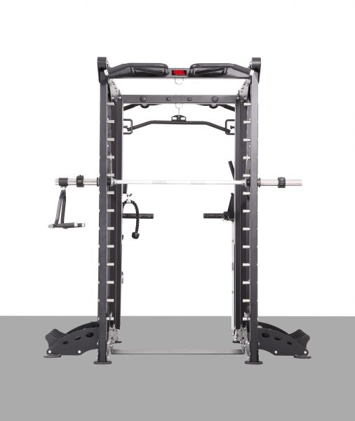 - Мультистанции – многофункциональные тренажеры, которые позволяют спортсмену самостоятельно определять, с какой группой мышц работать. Включают в себя сразу несколько спортивных снарядов и могут комплектоваться дополнительными опциями.