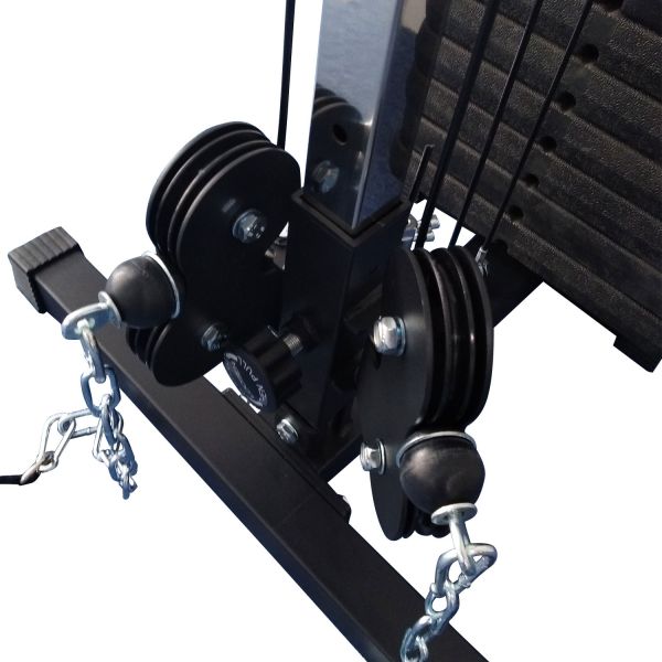 - Со встроенным весом – в них используются плоские грузы, закрепленные с помощью фиксаторов на тросах. Благодаря движению утяжелителей "вверх-вниз" отлично прорабатываются мышцы. Единственный недостаток – целенаправленная работа только с одной группой мышц.
